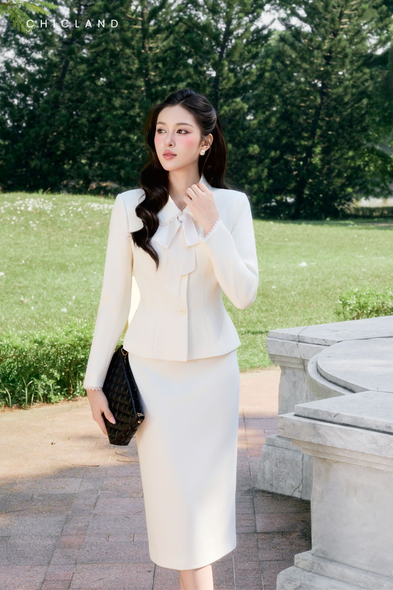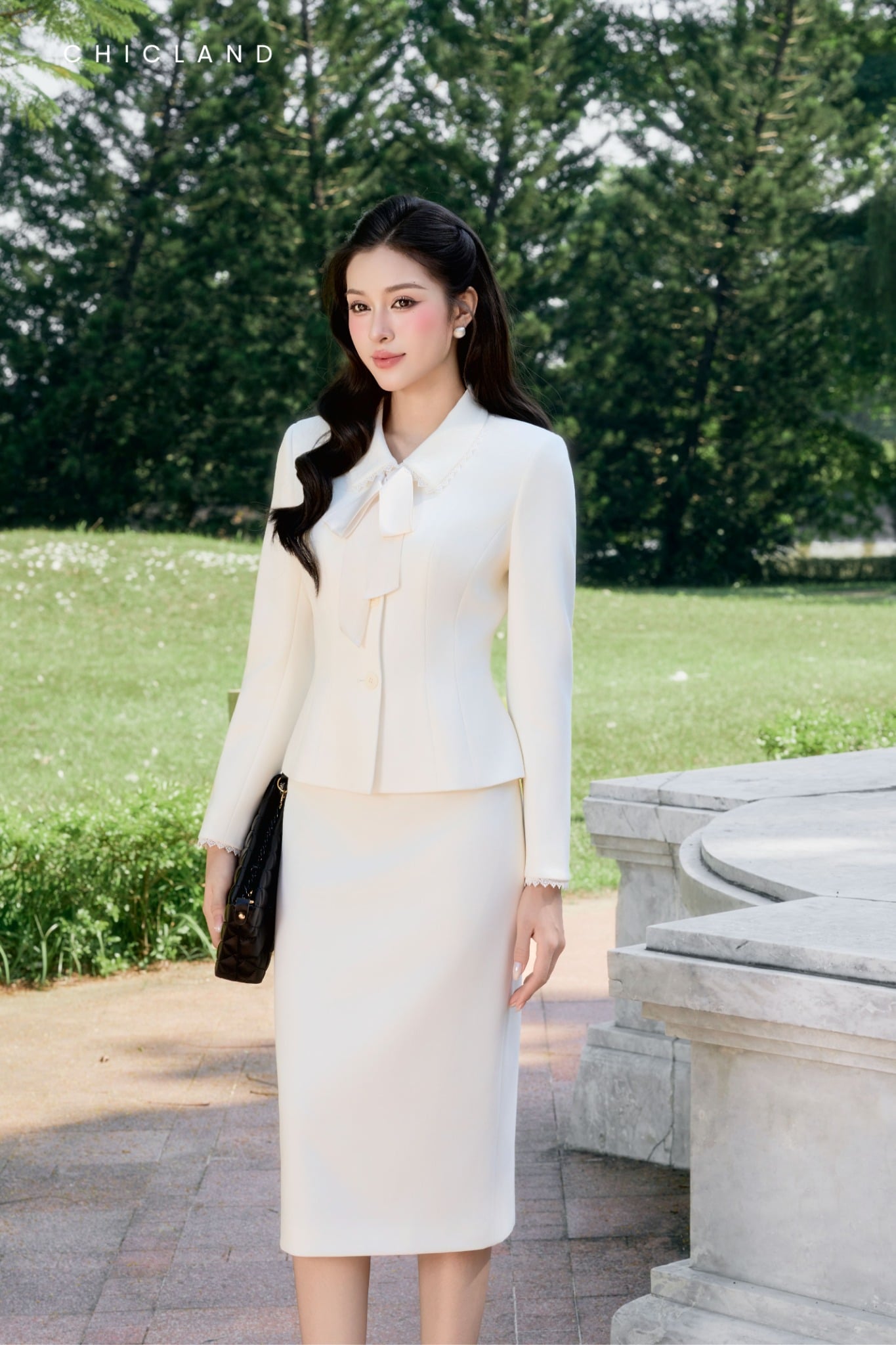 Chất liệu Viscose Chic-Land: Dòng sản phẩm: Vest Chất liệu: sản xuất từ chất xơ gỗ cây tre,... Vải mềm mại, thoáng mát và có độ giãn nhẹ. Màu Sắc Áo : Trắng Màu Sắc Juyp : Trắng