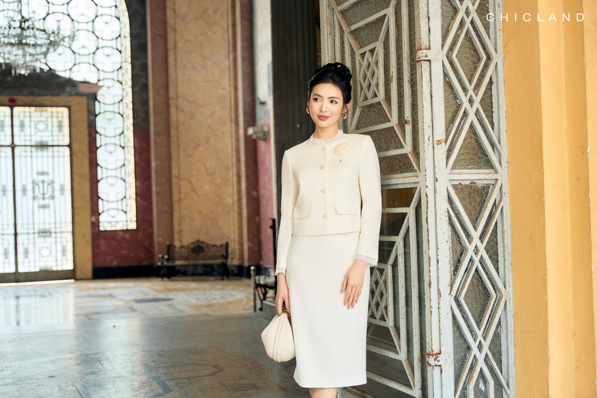 Chất liệu Viscose Chic-Land: Dòng sản phẩm: Vest Chất liệu: sản xuất từ chất xơ gỗ cây tre,... Vải mềm mại, thoáng mát và có độ giãn nhẹ. Màu Sắc Áo : Trắng Màu Sắc Juyp : Trắng